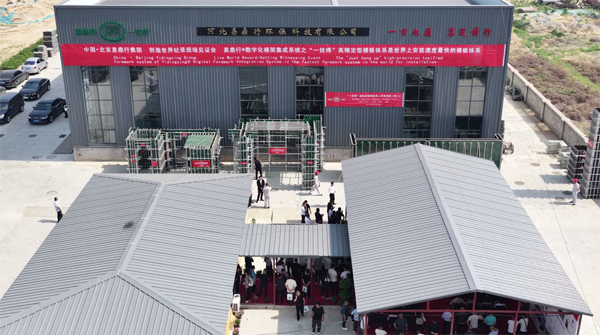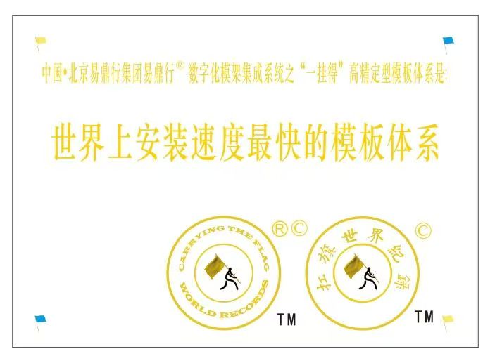 世界紀(jì)錄保持者: 中國•北京易鼎行集團(tuán)易鼎行®數(shù)字化模架集成系統(tǒng)之“一掛得”高精定型模板體系。